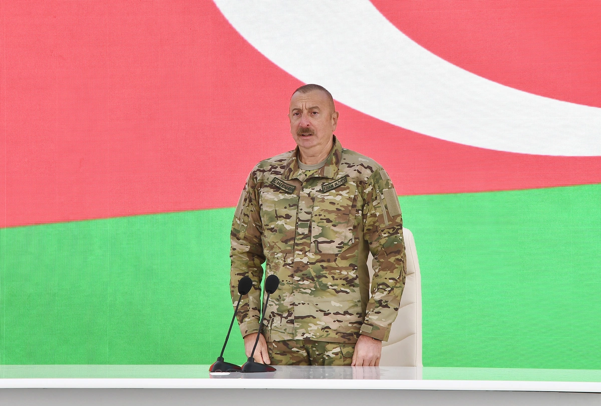 Bu təntənəli mərasim bu gün keçirilir. Bunun səbəbləri yəqin ki, sizə bəllidir. İlk növbədə, bu yeni hərbi mükafatlar hazırlanmalı idi, onlar yox idi. Onların dizaynı hazırlanmalı idi, onların hazırlanması təşkil edilməli idi. Bu, vaxt apardı. Eyni zamanda, pandemiyaya görə qapalı yerlərdə belə mərasimlərin keçirilməsi mümkün deyil və hava şəraiti də uyğun olmalı idi. Bir də ki, Hərbi Qənimətlər Parkı hazır olmalı idi. Mən istəyirdim ki, biz Parkın açılışı günüdə görüşək və bu yüksək mükafatlar sizə təqdim edilsin və Parkın ilk ziyarətçiləri siz olasınız. Buna görə bir qədər vaxt apardı. Ancaq bu gün bu mərasim keçirilir. Sizə Ali Baş Komandan kimi dərin təşəkkürümü bildirmək istəyirəm. Siz xalqımızın üzünü ağ etmisiniz, dünya azərbaycanlılarının üzünü ağ etmisiniz. Bizim Qələbəmiz təkcə xalqımızın qələbəsi deyil, bütün tük dünyası bizim qələbəmizlə fəxr edir. Biz yeni reallıq yaratmışıq. Biz qan tökərək, cəsarət göstərərək, düşməni qovaraq yeni reallıq yaratmışıq. Bu gün hər kəs bizimlə hesablaşmalıdır və hesablaşacaqdır.