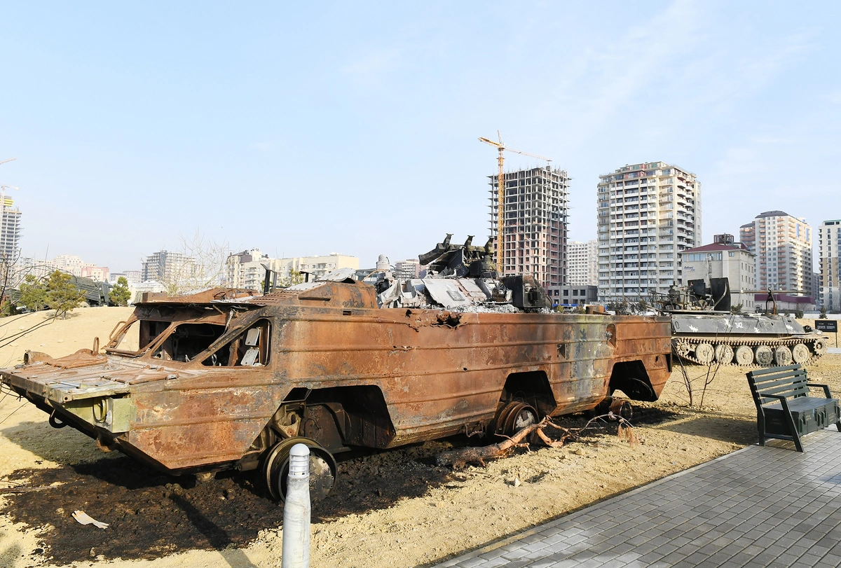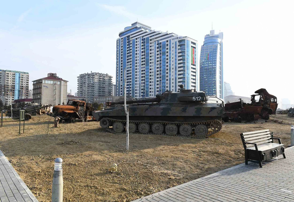Qeyd edək ki, xalqımızın Vətən müharibəsində göstərdiyi misilsiz qəhrəmanlığın və qazandığı tarixi zəfərin nümayiş etdirilməsi, şəhidlərimizin əziz xatirəsinin əbədiləşdirilməsi məqsədilə Prezident, Silahlı Qüvvələrin Müzəffər Ali Baş Komandanı İlham Əliyev Bakıda Vətən Müharibəsi Memorial Kompleksinin və Zəfər muzeyinin yaradılması haqqında Sərəncam imzalayıb, Hərbi Qənimətlər Parkının salınması ilə bağlı təşəbbüs irəli sürüb. Yaradılmasına bu ilin yanvar ayından başlanılan və 5 hektar ərazini əhatə edən Park paytaxtın Xətai rayonundadır. Parkdakı eksponatların arasında Silahlı Qüvvələrimizin işğaldan azad olunan ərazilərdə ermənilərdən qənimət götürdüyü 2 mindən çox avtomobilin nömrə nişanlarından hazırlanan və üzərində “Qarabağ Azərbaycandır!” şüarı əks olunan kompozisiya, Ermənistan tərəfindən törədilən müharibə cinayətləri, o cümlədən döyüş bölgəsindən uzaq olan ərazilərimizin raket zərbələrinə məruz qalması, dinc sakinlərin qətlə yetirilməsi və yaralanması barədə faktlar, düşmən tərəfindən Azərbaycan ərazisinə atılmış “İsgəndər-M” raketinin qalıqları var. Burada Vətən müharibəsinin gedişində düşməndən qənimət götürülən hərbi texnikanın bir qismi, ümumilikdə 300-dən çox eksponat, o cümlədən 150-dək ağır texnika, tanklar, döyüş maşınları, artilleriya qurğuları, zenit-raket kompleksləri, atıcı silahlar, hərbi nəqliyyat sərgilənir. Təqdim edilən eksponatlar, 10 səddən ibarət müdafiə sistemi, sığınacaqlar, hərbi kazarmalar, Vətən müharibəsinin gedişatı barədə məlumatlar Azərbaycana Zəfər qazandıran döyüşləri bir daha göz önündə canlandırmağa geniş imkan yaradır.