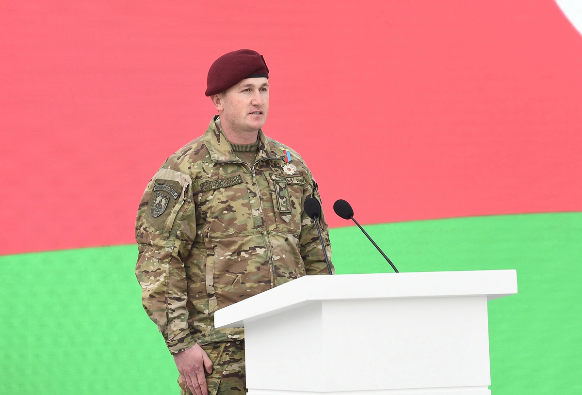 - Cənab Ali Baş Komandan, məruzə edirəm ki, işğal altında qalmış ərazilərimizin azad edilməsi ilə əlaqədar Sizin əmrinizi, hər bir hərbi qulluqçu kimi, biz Daxili İşlər Nazirliyinin Daxili Qoşunlarının xüsusi təyinatlıları da səbirsizliklə gözləyirdik. Qırx dörd günlük Vətən müharibəsində qazanılmış Qələbədə iştirakımla şərəf və qürur duyuram. Vətən torpağının hər qarışı uğrunda döyüşmək bizə də nəsib oldu və sonda şanlı Qələbə əldə edildi, Azərbaycanın tarixinə şanlı bir salnamə kimi həkk olundu. Biz bu müharibədə Qələbəni şəhidlərimizin canı, qanı bahasına, hərbçilərimizin rəşadəti hesabına qazandıq. Hər dəfə döyüşə atılanda bizi bir amal, bir məqsəd gücləndirirdi - qısa müddət ərzində düşmənə sarsıdıcı zərbə vurub torpaqlarımızı tapdaqdan azad edək. Vətən naminə qəhrəmanlıq göstərən, Vətəni həyatı, sağlamlığı bahasına müdafiə edən döyüşçü yoldaşlarımız həmişə bizim ürəyimizdə və yaddaşımızdadır. Onlar heç vaxt unudulmayacaq!