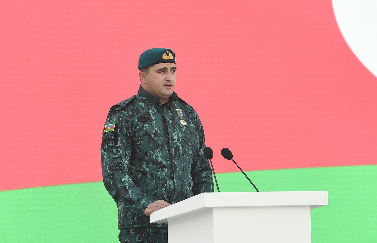 Möhtərəm Prezident, cənab Ali Baş Komandan, Sizi əmin edirik ki, bütün Azərbaycan sərhədlərinin mühafizəyə götürülməsi kimi çətin və şərəfli tapşırığın öhdəsindən bundan sonra da əzmkarlıqla gələcəyik. Qürurluyam ki, mən qalib Ali Baş Komandanın, qalib dövlətin, qalib xalqın zabitiyəm.