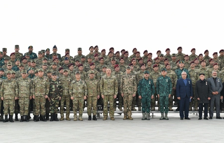Prezident İlham Əliyev: Əziz hərbçilər, Sizi həm Qələbə, həm də yüksək mükafatlar münasibətilə bir daha ürəkdən təbrik edirəm. Sizə cansağlığı, yeni uğurlar, yeni qələbələr arzulayıram. Sağ olun.