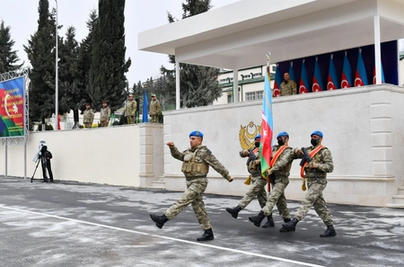 Müzəffər Ali Baş Komandan hərbi hissəyə döyüş bayrağını təqdim edib.