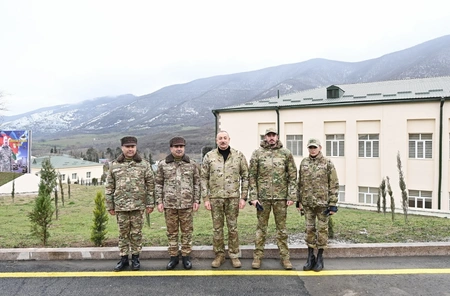 Sonra Prezident İlham Əliyev, birinci xanım Mehriban Əliyeva və oğulları Heydər Əliyev şəhidlərin xatirə guşəsinin önünə gül qoyublar, hərbi hissənin qərargahında, idman zalında, yeməkxanada, zabitlər üçün evlərdə yaradılan şəraitlə tanış olublar.