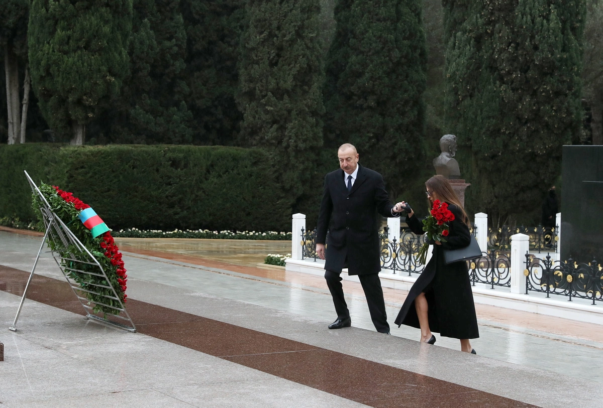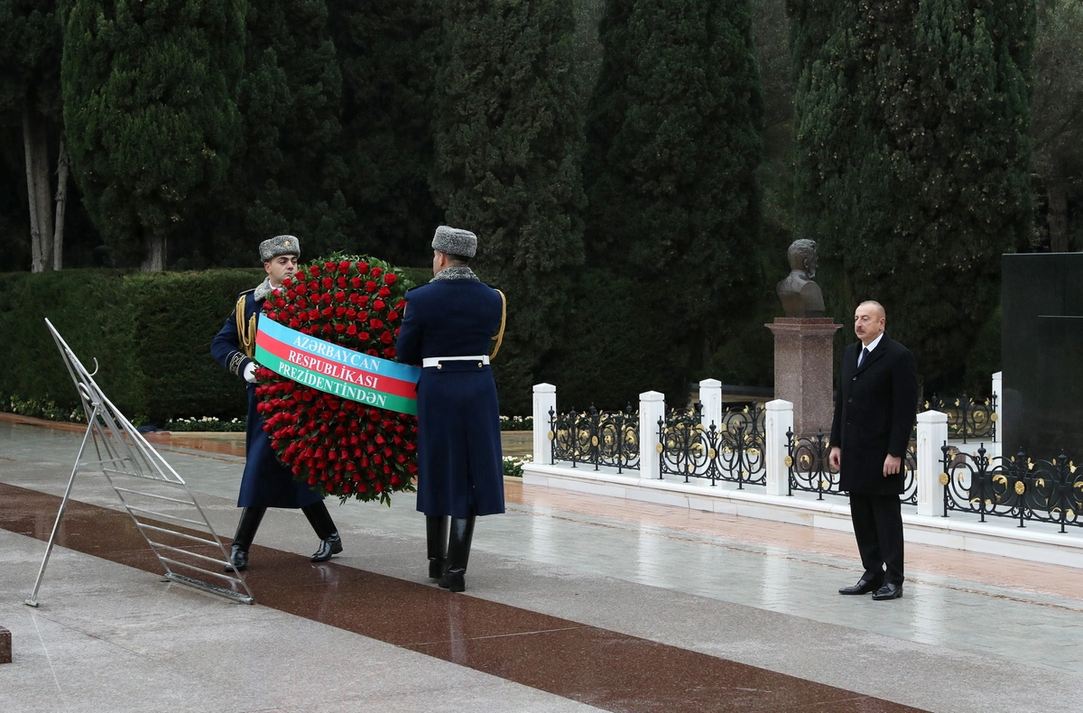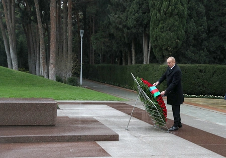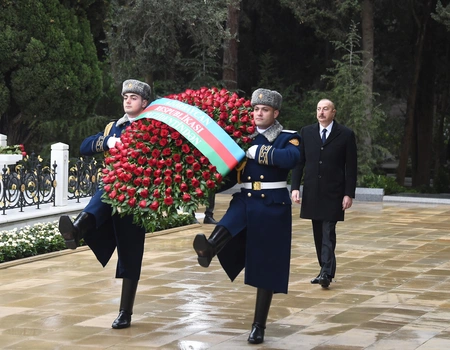 Prezident İlham Əliyev Ulu Öndərin məzarı önünə əklil qoyub.