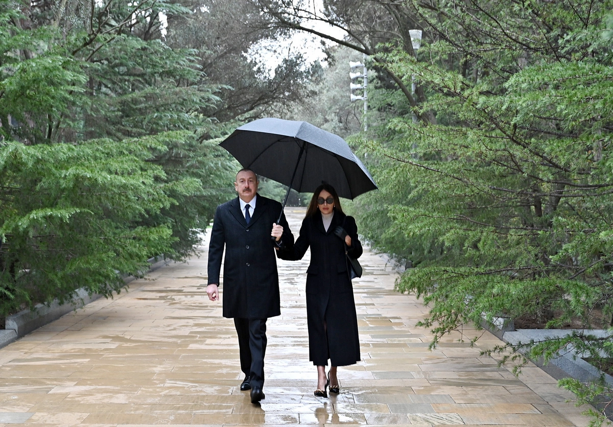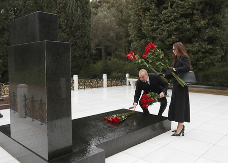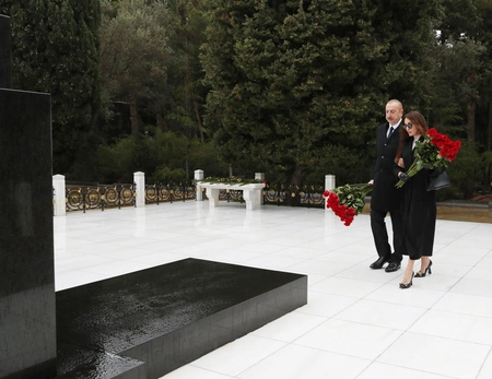 İlham Əliyev və Mehriban Əliyeva Ulu Öndər Heydər Əliyevin məzarını ziyarət edib