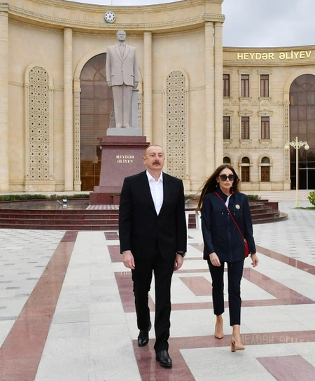"Report" xəbər verir ki, dövlət başçısı və birinci xanım Salyan şəhərində Ulu Öndər Heydər Əliyevin abidəsini ziyarət ediblər.