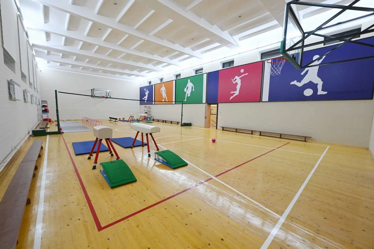 Təhsil ocağının idman korpusunda isə universal zal (basketbol, voleybol, gimnastika, qılıncoynatma və s.) və güləş zalı əsaslı təmir olunub. Bundan əlavə, trenajor, cüdo zalı, fizioterapiya otağı, reabilitasiya idman zalı, buxar və yardımçı otaqlar yenidən qurulub.