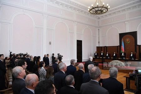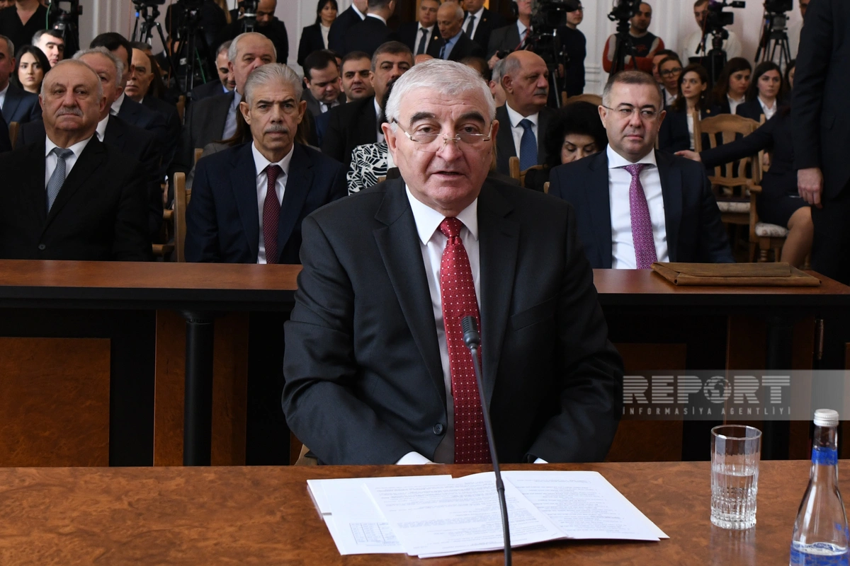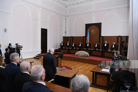 Konstitusiya Məhkəməsinin sədri Fərhad Abdullayev məhkəmə heyəti və katibini təqdim edib.