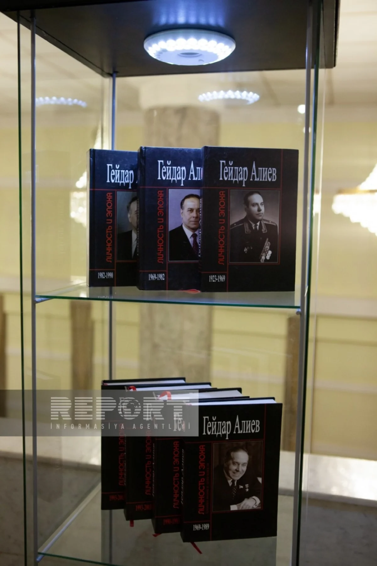 Foyedə Ulu Öndərin həyatından bəhs edən fotosərgi təşkil olunub, kitablar nümayiş etdirilib.