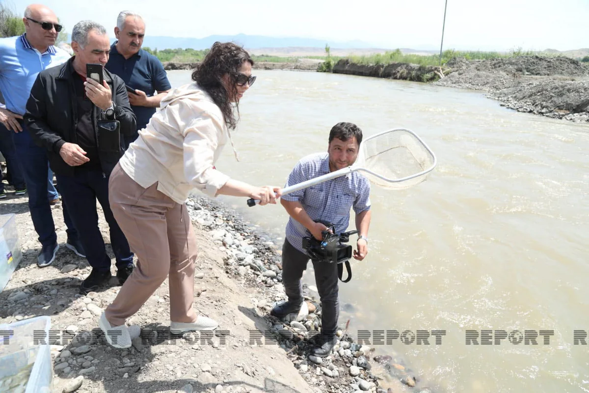 “Report”un Zəngilana ezam olunmuş əməkdaşı xəbər verir ki, partiya sədrləri prosesə qoşularaq çaya balıq buraxıblar.