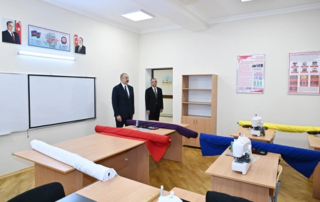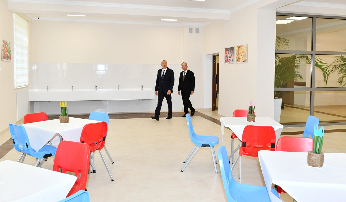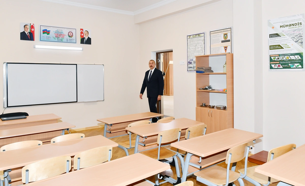 Prezident İlham Əliyev məktəbin yeni binasının çağırışa qədər hərbi hazırlıq otağında, ekosinifdə, biologiya kabinetində, informatika və rəsm otaqlarında, yeməkxanada, əmək otağında və fizika kabinetində yaradılan şəraitlə tanış oldu.