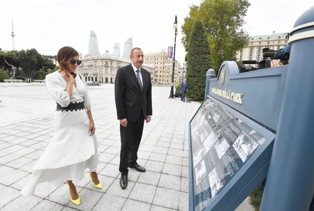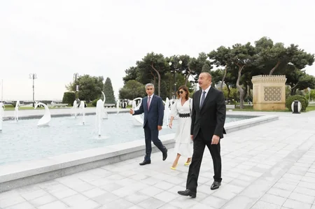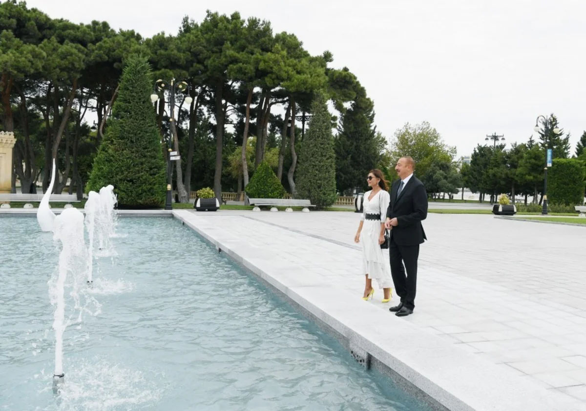 Prezident İlham Əliyev Bakı bulvarında yenidən bərpa edilən “Qu quşları” fəvvarə kompleksinin açılışında iştirak edib