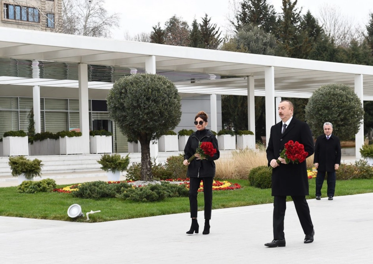 "Report" xəbər verir ki, dövlət başçısı və xanımı xalqımızın ümummilli lideri Heydər Əliyevin şəhərin mərkəzindəki abidəsi önünə gül dəstəsi qoyublar.