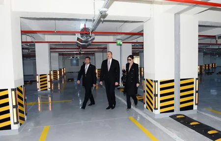 Dövlət başçısı və xanımı burada yaradılan şəraitlə də tanış olublar. 650 avtomobil tutumuna malik yeraltı dayanacaq “Safe Life” şirkəti tərəfindən ən müasir texniki avadanlıqla təchiz olunub. 24 saat açıq olacaq yeraltı avtomobil dayanacağında təhlükəsizlik sistemlərindən olan su ilə avtomatik söndürmə, ünvanlı yanğın siqnalizasiya, havalandırma və tüstüsovurma, yanğın səsləndirmə və təxliyənin idarə olunması, videonəzarət, park naviqasiya, park ödəmə sistemləri və istiqamət lövhələri qurulub. Bu sistemlərdə dünyanın qabaqcıl şirkətlərinin ən keyfiyyətli avadanlığından istifadə olunub. Yeraltı avtomobil dayanacağına, texniki və xidməti otaqlara vizual nəzarət etmək üçün videonəzarət sistemindən istifadə edilib. Sistem sayəsində dayanacaq ərazisinə və giriş-çıxışa tam nəzarət etmək, insan gözündən yayına biləcək vəziyyətlərə belə diqqət yetirmək mümkün olacaq. Yeraltı dayanacaqda avtomobillərin təhlükəsizliyi ən yüksək səviyyədə nəzərə alınıb.