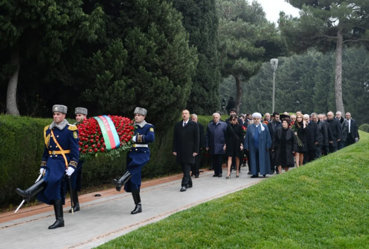 Prezident İlham Əliyev ulu öndərin məzarı önünə əklil qoyub. Azərbaycanın dövlət himni səsləndirilib.