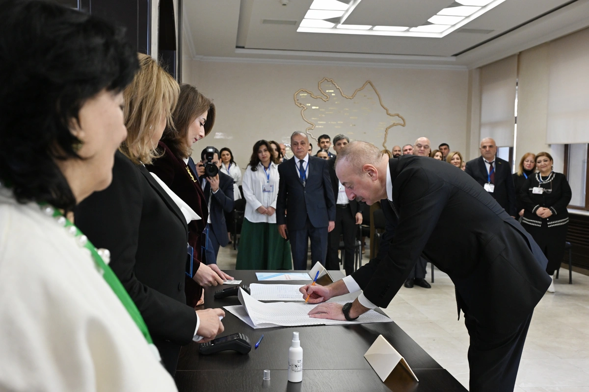 "Report" xəbər verir ki, Azərbaycan Prezidenti İlham Əliyev Bakı şəhərinin 7 saylı Səbail seçki dairəsinin 6 nömrəli orta məktəbdə yerləşən 1 saylı seçki məntəqəsində səs verib.