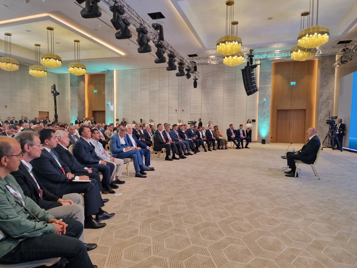 "Report" xəbər verir ki, Azərbaycan Respublikasının Prezidenti İlham Əliyev Forumda çıxış edir.