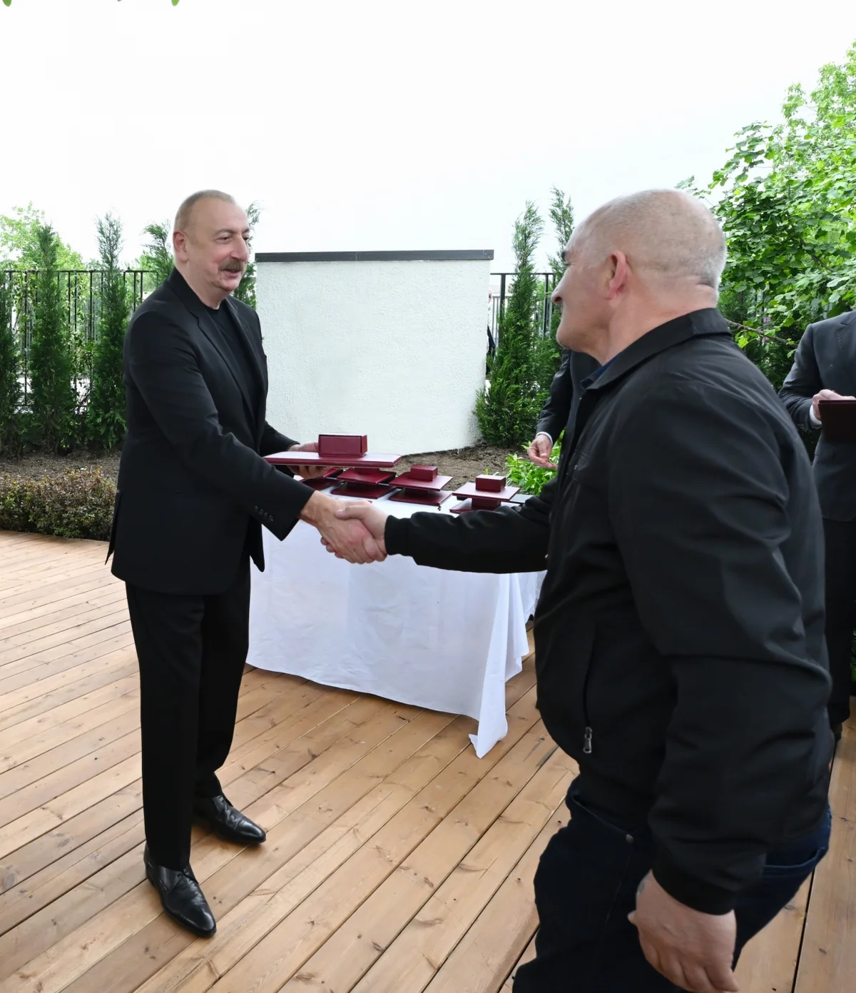 Dövlətimizin başçısı və birinci xanım evlərin açarlarını sakinlərə təqdim etdilər.