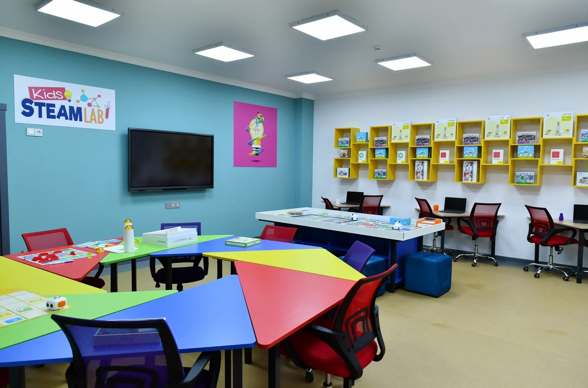 Bu məktəbin STEAM Mərkəzi də elektron lövhələr, kompüterlər, 3D printerlər, müvafiq öyrədici qurğular, elektron komponentlər və dəftərxana ləvazimatları ilə təmin olunub. Burada, həmçinin mühəndis emalatxanası, kiçik yaşlı uşaqlar üçün zona, təlim və robototexnika otaqları var.