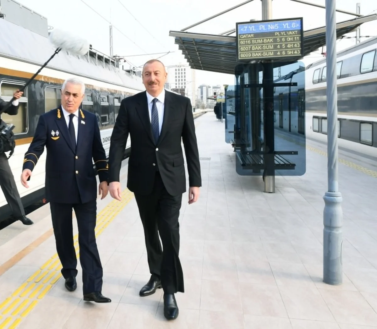 Dəmir yollarının yenidən qurulması istiqamətində çox böyük işlər görülüb. Mən artıq bu rəqəmləri səsləndirmişəm. Dünya miqyasında ən mötəbər beynəlxalq təşkilatlardan biri olan Davos Dünya İqtisadi Forumu Azərbaycanda dəmir yollarının keyfiyyəti ilə bağlı hesabatda göstərib ki, Azərbaycan dəmir yollarının səmərəliliyi baxımından dünyada 12-ci yerdədir, dəmir yollarının keyfiyyətinə görə 34-cü yerdədir. Bütün bunları son illər ərzində biz həll etmişik. Dəmir yollarının abadlaşdırılması, qurulması, dəmir yolu xidmətlərinin təkmilləşdirilməsi istiqamətində son illər ərzində, xüsusilə Cavid Qurbanovu mən bu vəzifəyə təyin edəndən sonra böyük irəliləyiş var. Həm Azərbaycan artıq beynəlxalq nəqliyyat mərkəzlərinin birinə çevrilib, Bakı-Tbilisi-Qars dəmir yolu istifadəyə verilib, Şimal-Cənub nəqliyyat dəhlizi işləyir, yükdaşımalar kəskin artır, eyni zamanda, ölkə daxilində infrastruktur təzələnir, İsveçrə istehsalı olan yeni müasir “Ştadler” vaqonları alınıb. Hesab edirəm ki, bu vaqonlar, dünya miqyasında ən gözəl və təhlükəsiz vaqonlardır.