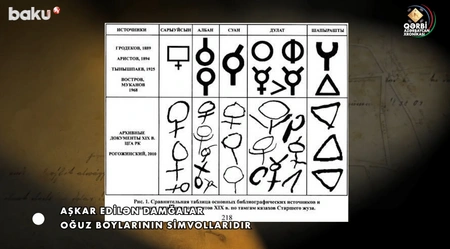 Onun sözlərinbə görə, türk tayfalarının damğaları bütün Qafqaz boyunca yayılıb. Krımdan Türküstana qədər tapılan damğalar Xəzərlərə məxsusdur. Damğalar Oğuz boylarının simvollarıdır. Azərbaycan ərazisində damğalar türklərin Xəzər, Qıpçaq, Oğuz qollarına aiddir. Qobustandakı damğaların eynisi Qazaxıstanın Mangistau vilayətində də mövcuddur. Qobustandakı damğalar arasında Noqay işarələri də var.