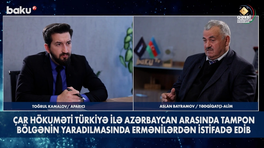 O, Qərbi Azərbaycanda etnik tərkibin dəyişdirilməsi üçün aparılan siyasətdən danışaraq bildirib ki, Çar Rusiyası 1813-1828-ci illərdə süni surətdə Türkiyə ilə Azərbaycan arasında tampon bölgə yaratmaq üçün ermənilərdən istifadə edib: "Çar hökuməti saxta məxfi xəritələr tərtib edərək yayıb".