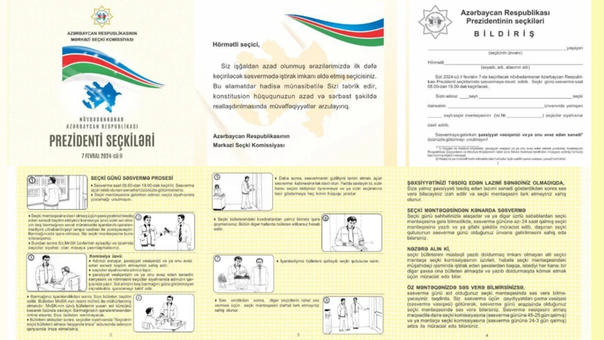 Bundan başqa, işğaldan azad olunmuş ərazilərdəki 6 seçki məntəqəsində MSK-da akkreditə olunmuş təşkilatlardan biri - Vətəndaşların Əmək Hüquqlarını Müdafiə Liqası ABŞ-nin “Oracle Advisory Group” təşkilatı ilə birgə “exit-poll” həyata keçirəcək. Həmin ərazilərdəki məntəqələrin hazırlığı prosesi tam başa çatıb və işğaldan azad olunmuş ərazilərimizdə səs verəcək seçicilərimiz artıq seçki günü öz hüquqlarını sərbəst şəkildə bu ərazilərdə reallaşdıracaqlar. Bu, tarixi bir şansdır və onlara qibtə etməmək mümkün deyil. MSK işğaldan azad edilmiş ərazilərdə olan seçicilərimiz üçün xüsusi formatlı bildirişlər hazırlayıb, hansı ki, həmin bildirişlərin üzərində eyni zamanda təbrik mətni də yer alıb. Bu, həqiqətən də əlahiddə və hər insanın həyatında çox rast gəlinməyən hallardandır.