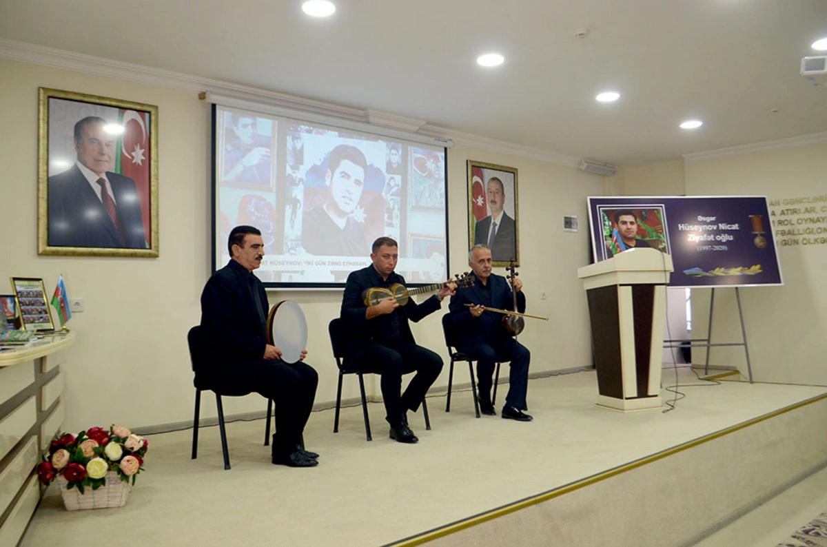 Tədbir şəhid Nicat Hüseynovun əziz xatirəsinə həsr olunmuş videorolikin mərasim iştirakçılarına təqdim olunması ilə başlayıb. Çıxış edənlər Müzəffər Ali Baş Komandanın rəhbərliyi altında yazılan şərəfli tarixdən, canı və qanı bahasına vuruşaraq torpaqlarımızı işğaldan azad edən oğullarımızın qorxmazlığından danışıb, onların xatirəsinin heç vaxt unudulmayacağını qeyd ediblər. Bildirilib ki, şəhidlərimizin xatirəsinin əbədiləşdirilməsi üçün görülən işlər, o cümlədən şəhid ailələrinin sosial rifahının yüksəldilməsi və şəhidlərimizin əziz xatirəsinə həsr olunmuş tədbirlərin təşkili ölkə rəhbərliyinin şəhidlərimizə və onların yaxınlarına olan sonsuz ehtiramının nümunəsidir.