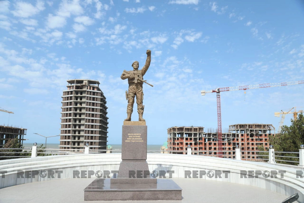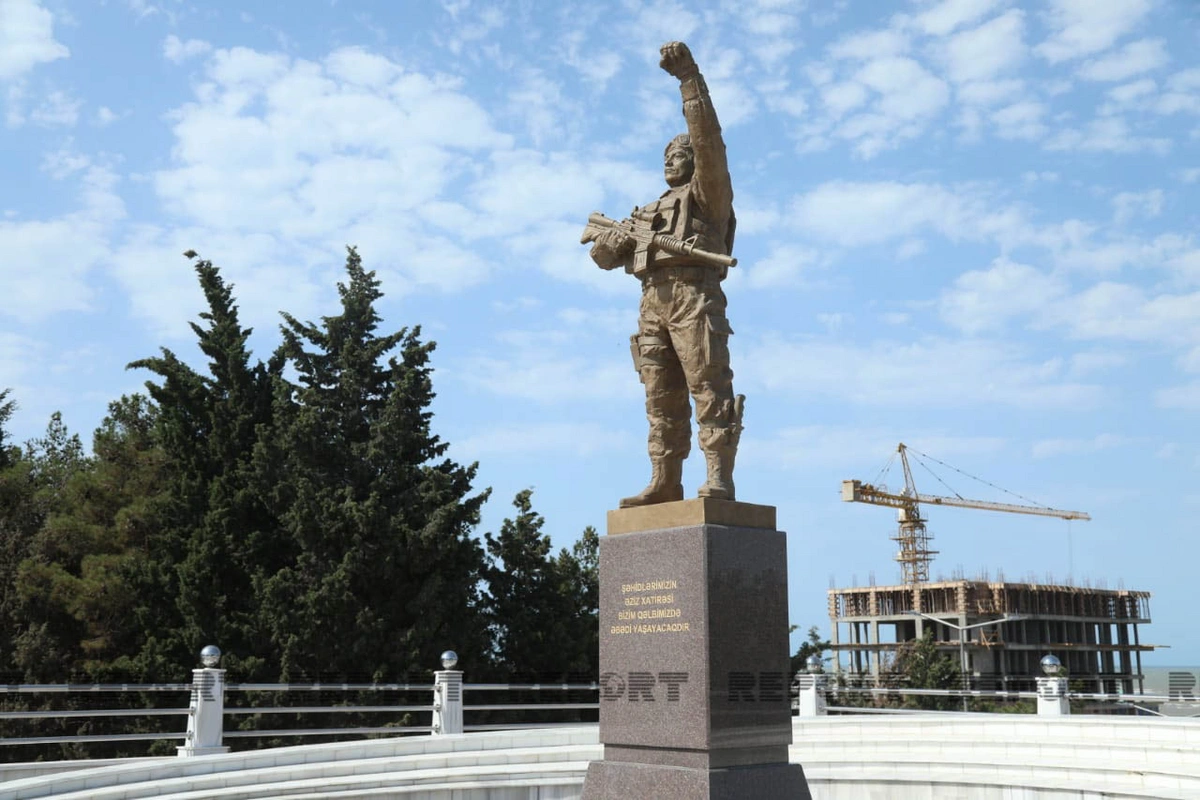 "Yenidən qurulan Sumqayıtın Şəhidlər xiyabanında qalib əsgər abidəsi ucaldılıb. Hündürlüyü 30 metr olan yeni bayraq dirəyi quraşdırılıb. Şəhidlər xiyabanının ərazisi genişləndirilərək 1,2 hektara çatdırılıb. Şəhidlər Xiyabanında yaşıllıq örtüyü salınıb, işıqlandırma sistemi müasirləşdirilib, fontan kompleksi inşa edili. Şəhidlər Xiyabanında birinci Qarabağ müharibəsi zamanı itkin düşmüş 144 şəxs haqqında məlumatların əks olunduğu abidə quraşdırılıb".