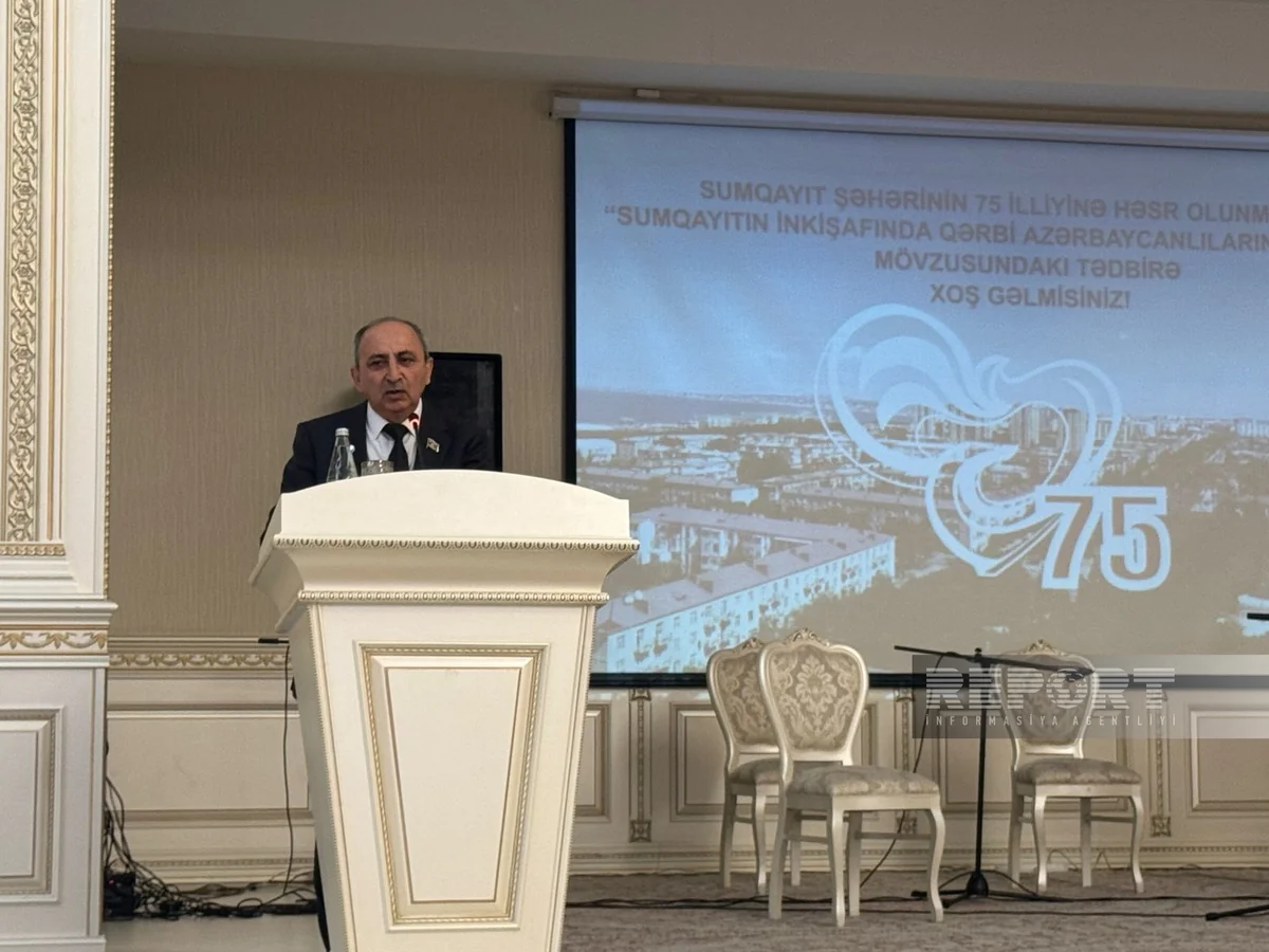 Milli Məclisin deputatı, Qərbi Azərbaycan İcmasının sədri Əziz Ələkbərli diqqətə çatdırıb ki, 1948-1953-cü illərdə qərbi azərbaycanlılar öz yurdlarından deportasiya olunanda onların ilk gəldikləri ünvanlardan biri də Sumqayıt şəhəri olub.