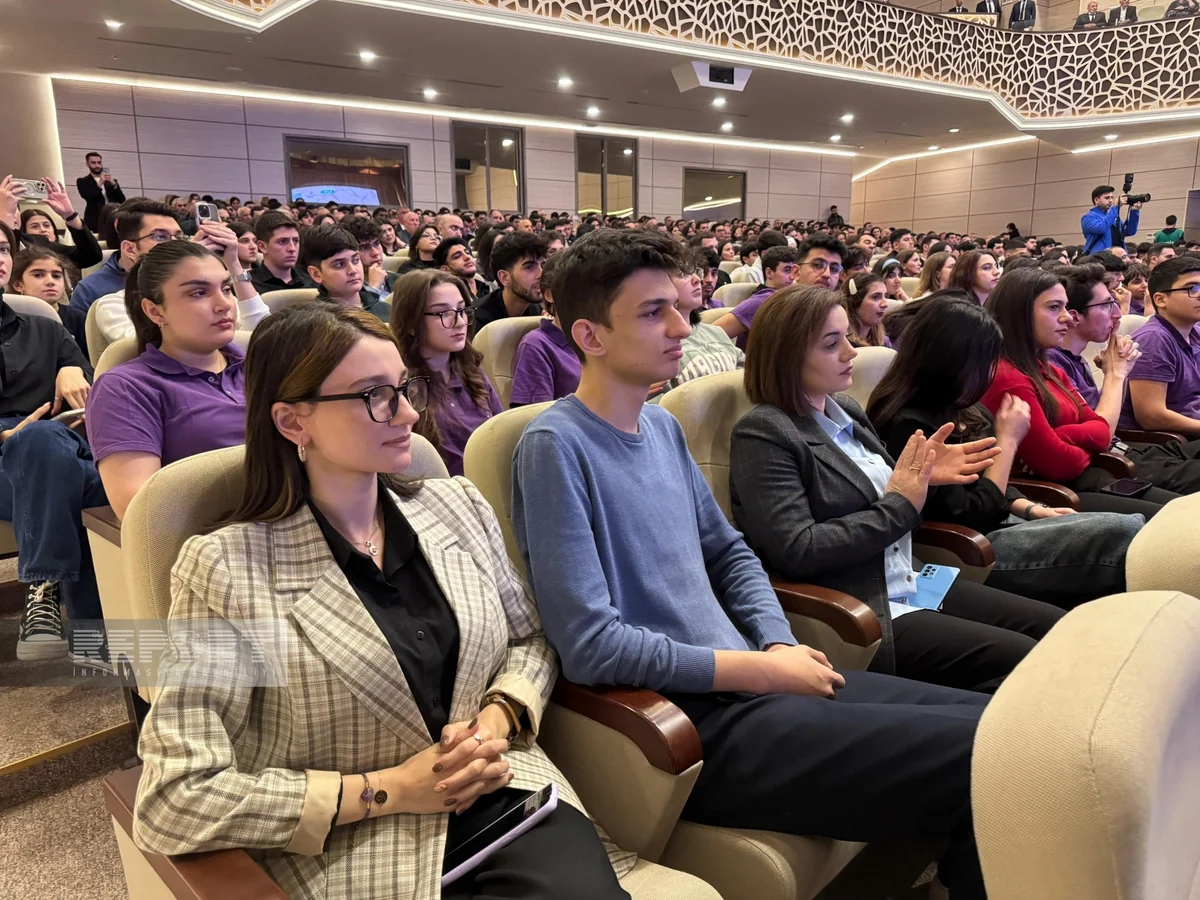 Sumqayıtlı gənc Vüqarə Əzizovanın çıxışından sonra Gənclər və İdman Nazirliyinin təsis etdiyi “İlin Gənci” mükafatları gənclərə təqdim olunub.