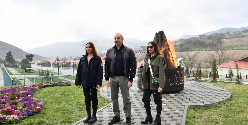 Prezident İlham Əliyev, birinci xanım Mehriban Əliyeva və qızları Arzu Əliyeva həmin gün Talış kəndində Novruz tonqalını alovlandırıblar.