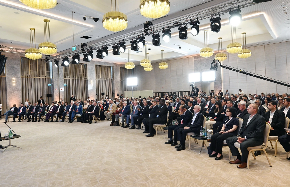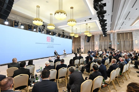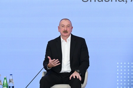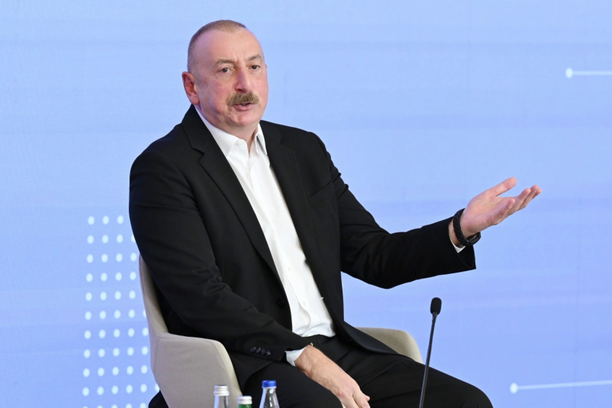 "Report" xəbər verir ki, Azərbaycan Prezidenti İlham Əliyev Forumda çıxış edir.