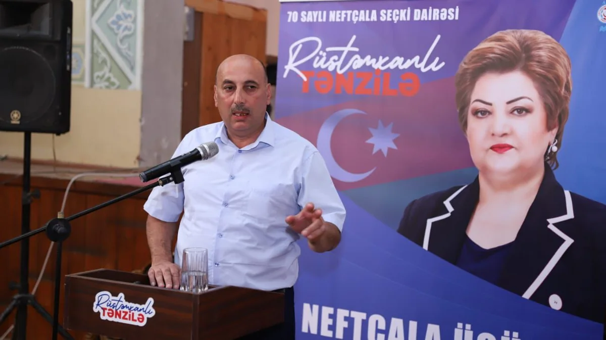 Xanım namizəd platforması haqqında məlumat verib, rayonun təbii ki, problemlərinin olduğunu qeyd edib.Tənzilə Rüstəmxanlı dövlət başçısının regionların inkişafı ilə bağlı gördüyü işləri diqqətə çatdırıb və söz verib ki, seçiləcəyi təqdirdə Neftçalanın da problemlərilə bağlı Milli Məclisdə mütəmadi məsələlər qaldıracaq, dövlətin inkişaf proqramlarına Neftçalanın da salınması təmin edəcək.