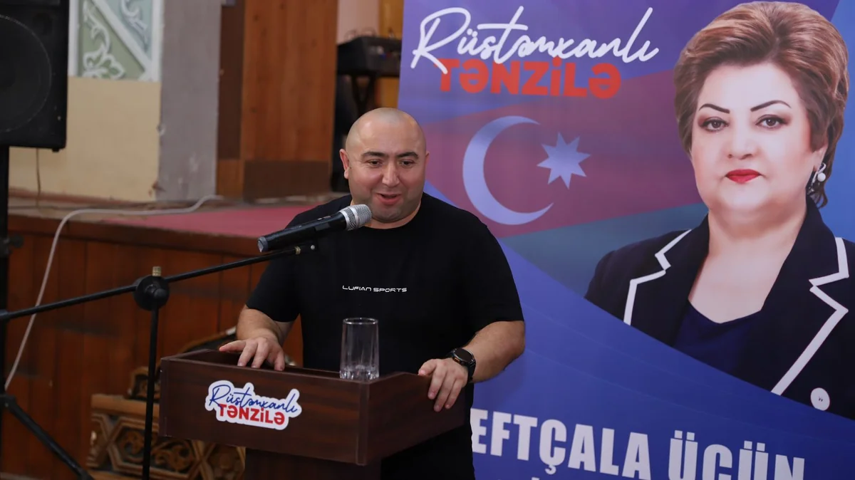 Daha sonra Tənzilə Rüstəmxanlı çıxış edib. Xanım namizəd əsas olaraq Neftçalada olan qadın problemlərinə, onların işlə təmin olunması, qadın hüquqlarının qorunması və bu kimi digər məsələlərə toxunub və ona yüksək etimad göstərilib millət vəkili seçilərsə, bu yolda görəcəyi işlərdən danışıb.