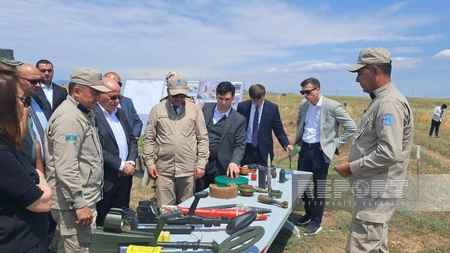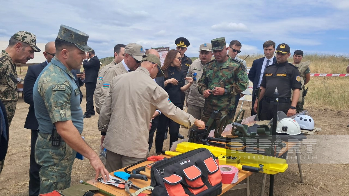 İşçi qrupun üzvləri həyata keçirilən layihələrin gedişatını, o cümlədən aşkar olunan mina və partlamamış hərbi sursatların partlayış yolu ilə zərərsizləşdirilməsi prosesini müşahidə ediblər.