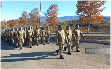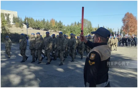 Hərbi orkestrin müşayiəti ilə davam edən hərbi yürüş Zəfər meydanında başa çatıb.