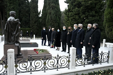 "Report" xəbər verir ki, nümayəndələr görkəmli oftalmoloq-alim, akademik Zərifə xanım Əliyevanın da xatirəsi anılıb, məzarı üzərinə tər güllər düzülüb.