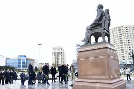“Report” xəbər verir ki, tədbir iştirakçıları əvvəlcə Heydər Əliyev parkında ümummilli liderin abidəsi önünə əklil və qızılgül dəstələri düzüblər.