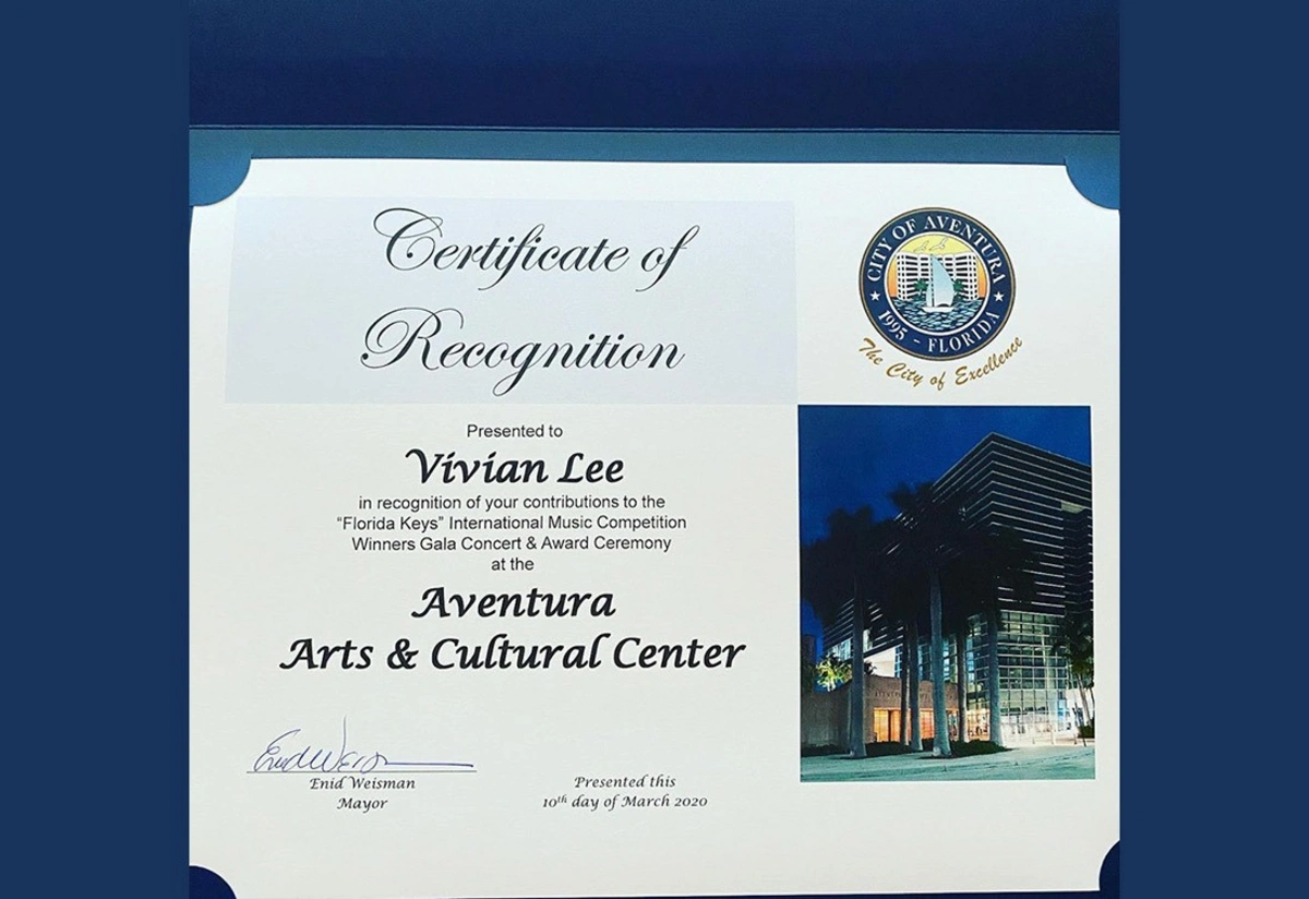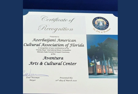 Diaspora İş üzrə Dövlət Komitəsindən "Report"a verilən məlumata görə, şəhər meri Aventura İncəsənət və Mədəniyyət Mərkəzinə bəxş etdikləri töhfələrə görə Pərvin Muradovaya, Key Lenqə, Vivian Liiyə və Töhfə Eminovaya xüsusi minnətdarlığını bildirib.