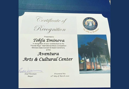 Qeyd edək ki, artıq bir neçə ildir ki, ABŞ-ın Florida ştatının Aventura şəhərində "Florida Keys" beynəlxalq musiqi müsabiqəsi keçirilir. Bu il müsabiqənin seçim mərhələsi baş tutsa da, COVİD-19 qlobal pandemiyası ilə əlaqədar aprelin 13-nə təyin olunmuş Qala konsert və təntənəli mükafatlandırma mərasimi ləğv edilib.