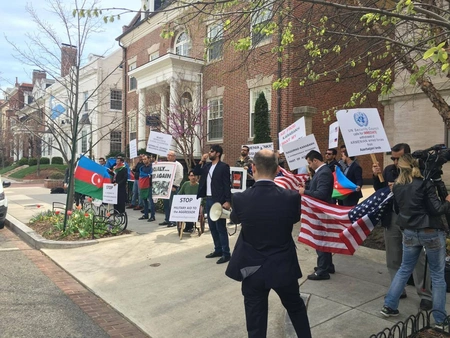 ABŞ-da yaşayan azərbaycanlılar Ermənistan səfirliyinin qarşısında aksiya keçirib - FOTO