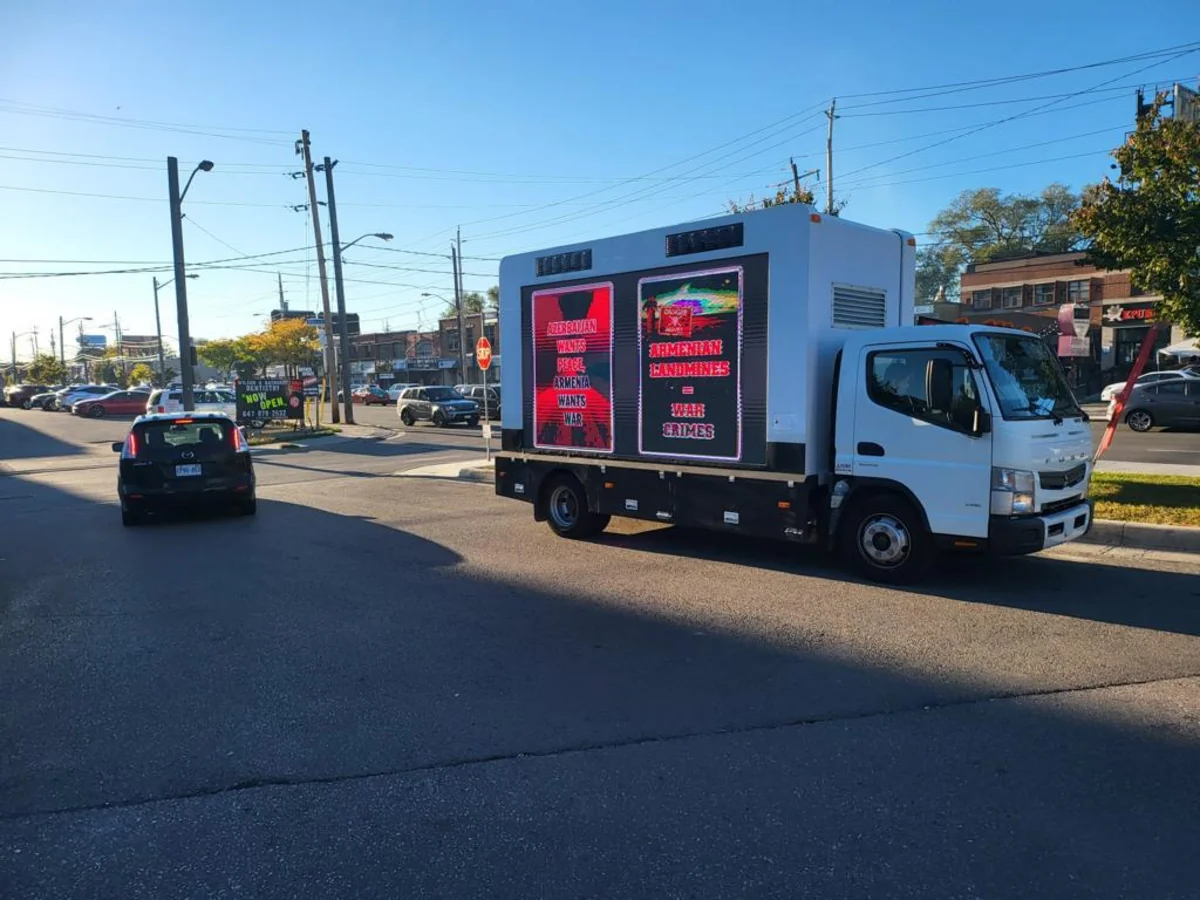 Aksiya zamanı Toronto şəhərinin mərkəzi küçələrində Azərbaycan həqiqətlərinin əks olunduğu LED ekranlı avtomobil hərəkət edib. Ekranda “Azərbaycan sülh istəyir, Ermənistan müharibə istəyir!”, “Ermənistan faktları təhrif edir, dünya ictimaiyyətini aldadır!”, “Ermənistan minaları = müharibə cinayətləri!”, “Azərbaycan torpaqlarında erməni əsgərlərinə YOX!”, “Ermənistan Azərbaycanın İrəvandakı mədəni irsini məhv edib!”, “Ermənistanın minaları mülki vətəndaşları öldürür”, “Ermənistan, sülh müqaviləsini imzala!” şüarları və bu mövzuları əhatə edən təsvirlər nümayiş etdirilib.