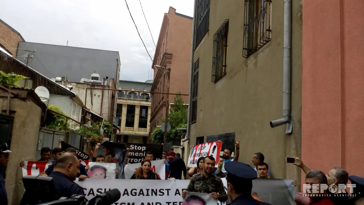 Azərbaycanlı gənclər Ermənistanın Gürcüstandakı səfirliyinin qarşısında etiraz aksiyası keçirib