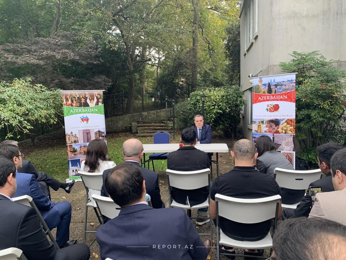 Dağlıq Qarabağ münaqişəsinin tarixi, Azərbaycan Silahlı Qüvvələrinin apardığı uğurlu əks hücum əməliyyatları barədə icma nümayəndələrini məlumatlandıran nazir Ermənistan silahlı qüvvələri tərəfindən azərbaycanlı mülki əhalinin, Gəncə, Mingəçevir, Tərtər və digər yaşayış məntəqələrinin hədəf alınması və nəticədə dinc insanlar arasında çoxsaylı itkilərin olması haqqında söz açıb.