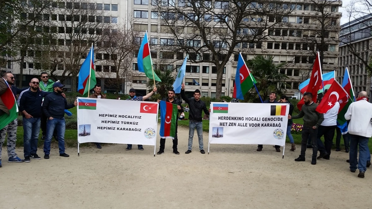 Bakı. 11 aprel. REPORT.AZ/ Bu gün Avropa Azərbaycan Cəmiyyətinin (TEAS) Benilüks ofisinin təşkilatçılığı, Azərbaycan-Belçika Dostluğu Cəmiyyəti və Dünya Azərbaycanlıları Konqresinin dəstəyi ilə Azərbaycan diasporunun 50-dən çox nümayəndəsi, Azərbaycanın dostları və beynəlxalq hüquq müdafiəçiləri Dağlıq Qarabağ və 7 ətraf rayonun Ermənistan tərəfindən işğalına etiraz əlaməti olaraq Brüsseldə aksiya keçiriblər.