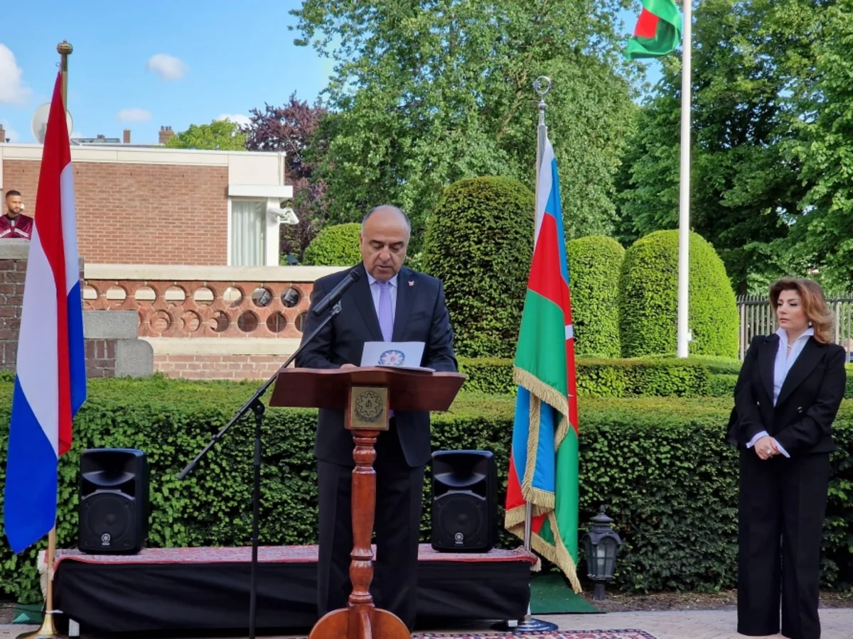 Azərbaycan və Niderlandın Dövlət himnlərinin səsləndirilməsi ilə başlayan tədbirdə ölkəmizin Krallıqdakı fövqəladə və səlahiyyətli səfiri Fikrət Axundov çıxış edib. 104 il öncə Azərbaycan Xalq Cümhuriyyətinin yaradılması və fəaliyyəti barədə ətraflı məlumat verən diplomat ötən əsrin 90-cı illərində müstəqilliyini yenidən bərpa etmiş Azərbaycanın üzləşdiyi erməni təcavüzündən danışıb. Bildirib ki, 2020-ci ilin payızında Ali Baş Komandan İlham Əliyevin rəhbərliyi ilə rəşadətli Ordumuz Azərbaycanın ərazi bütövlüyünün bərpa edilməsinə nail olub. Hazırda Azərbaycan hökumətinin Qarabağ və Şərqi Zəngəzurda apardığı tikinti-quruculuq işləri, ölkəmizin Avropa İttifaqının enerji təminatçısı olduğu, irimiqyaslı beynəlxalq tədbirlərə ev sahibliyi etdiyi diqqətə çatdırılıb.