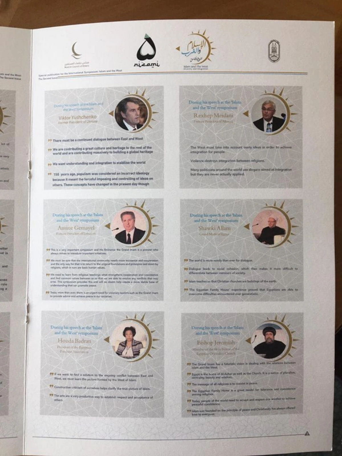 Bundan başqa, Belçikanın sabiq Baş naziri Yves Leterme, İordaniyanın sabiq hökumət başçısı Taher Masri, Andorranın sabiq Baş naziri Oscar Ribas Reig, Ərəb Liqasının sabiq baş katibi Amir Musa, Mərkəzin həmsədri, İsgəndəriyyə kitabxanasının sabiq direktoru İsmail Serageldin, İslam əməkdaşlıq Təşkilatının keçmiş baş katibi Ekmeleddin İhsanoglu da konfransa qatılıb.