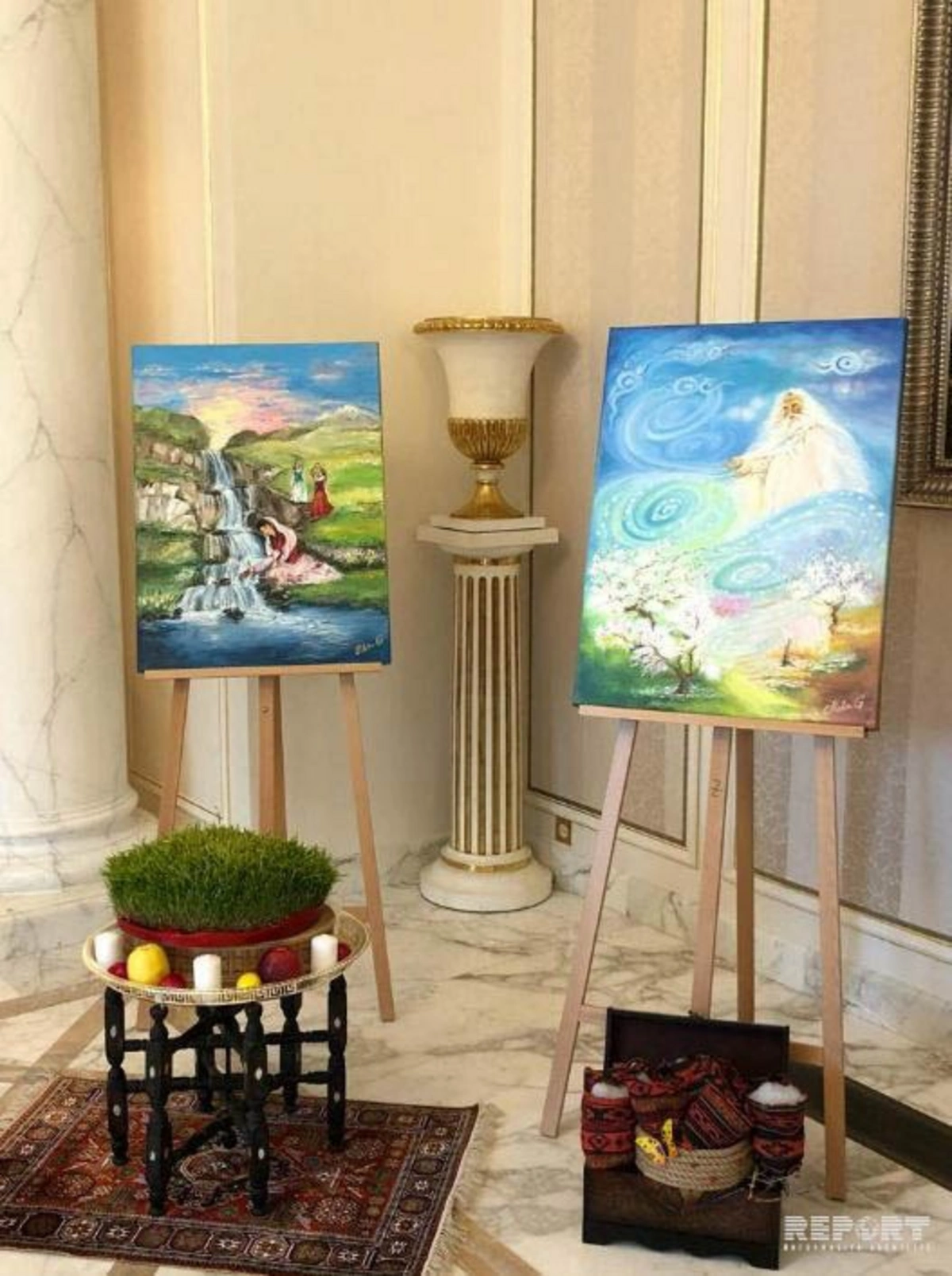 Novruz adət-ənələrinə həsr edilmiş azərbaycanlı rəssamlar Mehri Quliyeva və Ruziyyə Şabanovanın rəsm əsərləri qonaqlar tərəfindən böyük maraqla qarşılanıb.