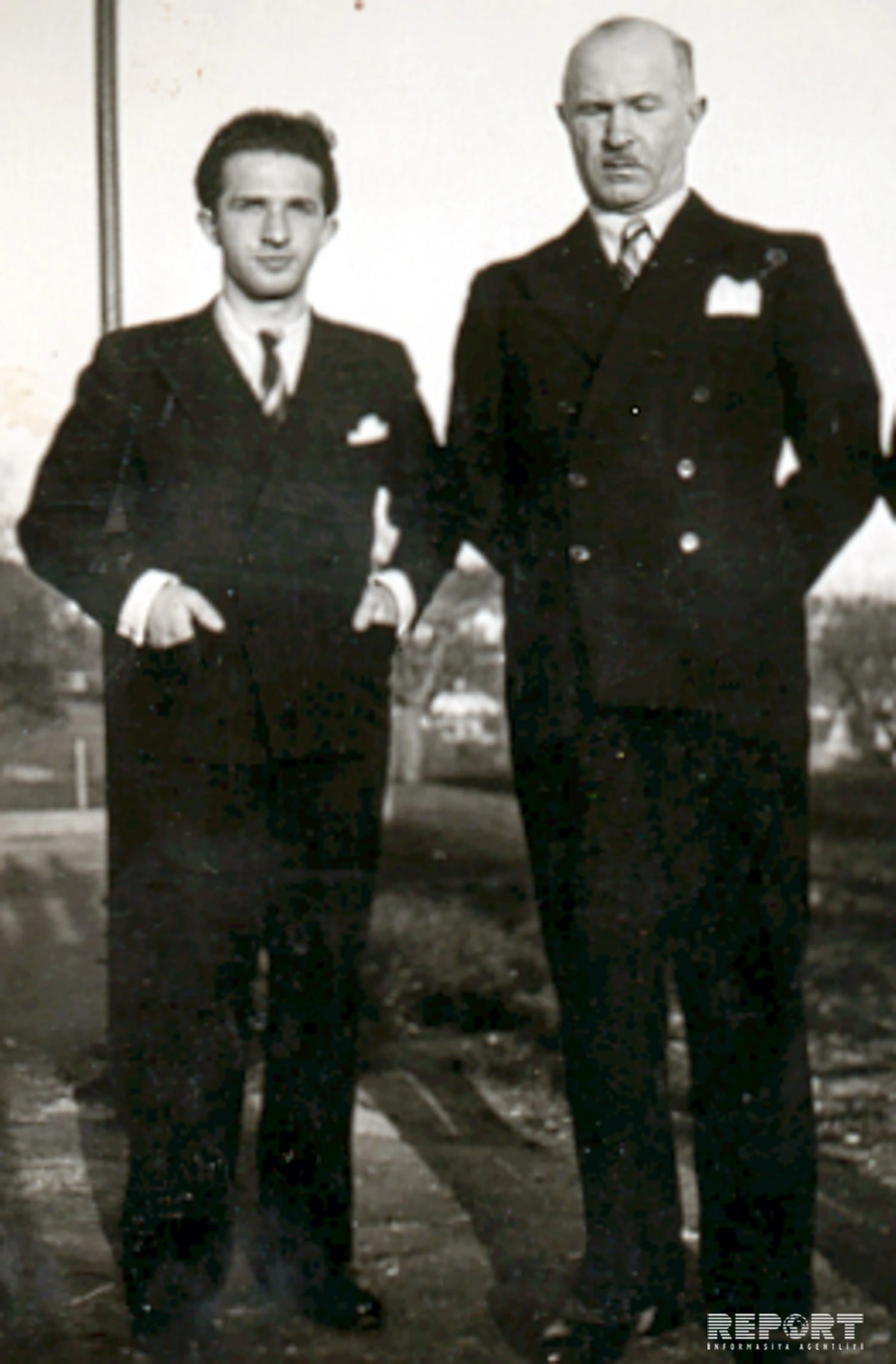 Ceyhun bəy Hacıbəyli (sağda) və II Dünya müharibəsində həlak olmuş oğlu Ceyhun (solda)